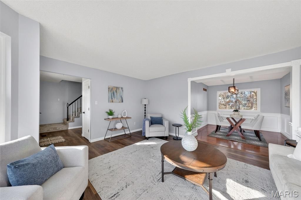 Beautifully updated 2 story home offering over 2100 square feet of living space in the sought after Fort Zumwalt School District. This 4 bedroom, 2.5 bath home features professional landscaping and a freshly painted interior with stylish LVP flooring throughout much of the main level. The living room welcomes you with a bay window and flows into the dining room with elegant wainscoting and updated lighting. The kitchen offers 42 inch white cabinets, granite countertops, stainless steel appliances, breakfast bar and convenient main floor laundry. The breakfast room opens to a screened in porch with stairs leading to the level fenced backyard that backs to trees and a walking path. The family room includes a bay window, ceiling fan and cozy gas fireplace with built in bookshelves. Upstairs the primary suite features a walk in closet and private bath with double vanities, soaking tub and separate shower. Bedrooms 2, 3 and 4 offer LVP flooring, ceiling fans and built in closet systems. The hall bath features an updated vanity, lighting, LVP flooring, skylight and shower/ tub combo. The unfinished walk out lower level opens to a concrete patio and fenced backyard.