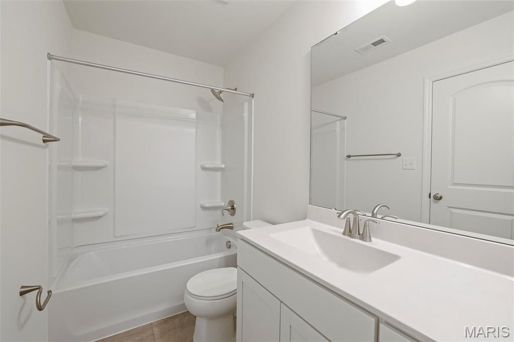 New McBride Burlington 2-story 3BR, 2.5BA home will be move-in ready this summer! The open floor plan is perfect for entertaining, with a spacious living room featuring a ceiling fan, large windows, & wood laminate flooring. The dining area opens to the backyard and flows into the kitchen w/a breakfast bar, Level 4 Brellin White 42 cabinets & stainless-steel GE appliances. The primary suite has a spacious walk-in closet & private bath w/a double vanity, enclosed toilet, linen closet, & 5' walkin shower. Upstairs has a laundry room, 2 bedrooms w/walk-in closets, and a full bath. Additional features include a main floor powder room, a 2 car garage with coach lights, & white 6-panel interior doors. Regal Pines offers beautiful new homes in Ellisville with convenient access to shopping, dining, parks, and major highways for easy commuting throughout St. Louis County. Enjoy peace of mind with McBride Homes' 10 year builders warranty & incredible customer service! Similar photos shown.