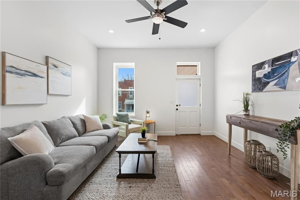 Charming and spacious 3-story townhome located in Benton Park West, offering approximately 2,428 square feet of living space and just a short distance from the vibrant Cherokee Street Historic Business District offering an eclectic mix of restaurants, coffee shops, antique stores, boutiques, and locally owned shops. Enjoy convenient access to nearby neighborhoods including Fox Park, Benton Park, and Soulard, providing even more dining, entertainment, and city amenities.Step inside and notice the high ceilings and natural light that carry throughout the home, creating bright and comfortable living spaces across all three levels. The main floor offers generous room for both living and dining, making it ideal for everyday living or entertaining. The kitchen features white cabinetry, ample cabinet storage, and a hanging pot rack for added functionality. A main-floor laundry area and half bath add everyday convenience.The second floor includes two bedrooms with high ceilings and natural light. One bedroom features double closets for additional storage, and a full hallway bathroom serves this level.The third floor provides a flexible and private space that includes a bedroom, a full bathroom, and a bonus area that could be used as a home office, workout space, reading nook, or lounge area depending on buyer preference.Outside, the fully fenced backyard offers space for outdoor enjoyment and includes a parking pad for off-street parking.Enjoy flexible, multi-level living in the heart of Benton Park West, just steps from Cherokee Street's shops, dining, and local culture. Approximately 2,428 square feet of living space provides room to grow, entertain, and make this home your own.
