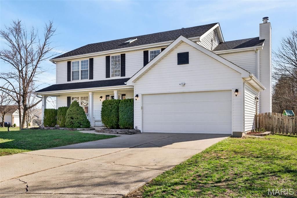Welcome to 4923 Dresden Way - a beautifully refreshed two-story home offering space, style, and a location that's hard to beat.From the moment you arrive, the charming covered front porch and inviting curb appeal set the tone. Inside, you'll find hardwood floors, fresh paint throughout, and abundant natural light, highlighted by a classic bay window and a cozy fireplace that anchors the main living space.The updated kitchen is ready for both everyday living and entertaining, featuring granite countertops, new stainless steel appliances, and easy flow into the formal dining room. A main-floor laundry room adds extra convenience.Upstairs, enjoy the clean, modern feel of new luxury vinyl plank flooring throughout the second level. The primary suite is a true retreat with tray ceilings, fresh paint, a spacious walk-in closet, and a beautifully renovated bathroom complete with double vanities, a walk-in shower, and a freestanding soaking tub.Step outside to a large fenced backyard-perfect for gatherings, outdoor dining, or relaxing evenings.Additional improvements include new basement windows and added joist insulation, helping improve comfort and temperature control year-round.Located in a quiet, established neighborhood with excellent highway access, you'll enjoy being just minutes from shopping and dining near the Mid Rivers area while still feeling tucked away. Outdoor enthusiasts will appreciate the walking path access to Veterans Tribute Park, about a mile away.Move-in ready, thoughtfully updated, and ideally located-this is one you won't want to miss.