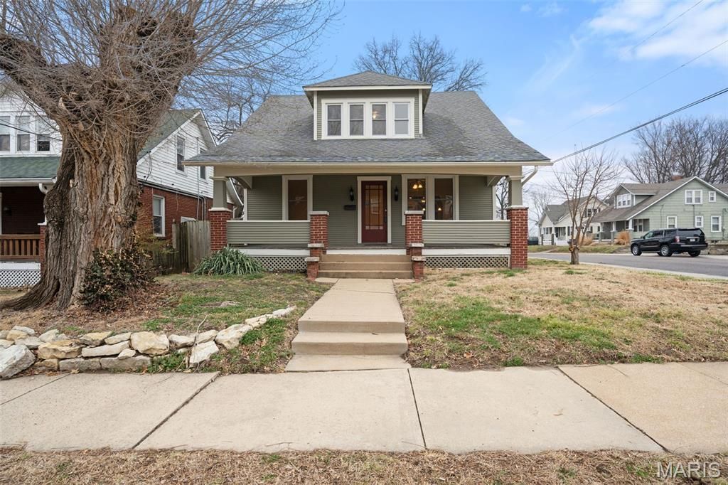 Circa 1925 Prepare be smitten by this well appointed craftsman on a corner lot just a couple blocks from the beautiful Missouri river. All of the rooms that lie within are of an unexpected size and make for a place for folks to spread out and come together. With a covered porch that spans the front entry with original hardwoods & wainscoting, morning & evenings hours are enjoyed relaxing outside. Upon entering the oversized living room lounge is made for relaxing nights at home & extends via a graceful archway to the formal dining area. Made for many, the open floor plan & bountiful counter space & cabinetry in the kitchen has a breakfast bar for morning meals and built-in storage/pantry nook around the refrigerator. The main level primary suite has a large full bathroom that opens to walk in closet. Plus a half bath just off the kitchen makes time together with ease. Upstairs are three more bedrooms & a second full bathroom. The lower level has office space & bonus rooms plus a third full bathroom that could be updated. Both the hot water heater & HVAC were replaced in 2023. The large laundry room with bonus storage makes chores & ease. Outside the level lot has a privacy fence with wood gated access to secured parking. Blocks from Washington city park and city pool, recreation and walkable to the mom-n- pops and Indie shops of historic downtown Washington recreation, amenities & entertainment abound.